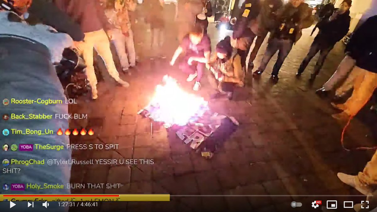 (PS) This burning was organized by Owen Shroyer of InfoWars—top lieutenant of Alex Jones, who Trump personally asked to lead the march on the Capitol. Also present? Tim Gionet ("Baked Alaska"), who has since been arrested. And Matt Colligan, who you may know from this old photo: