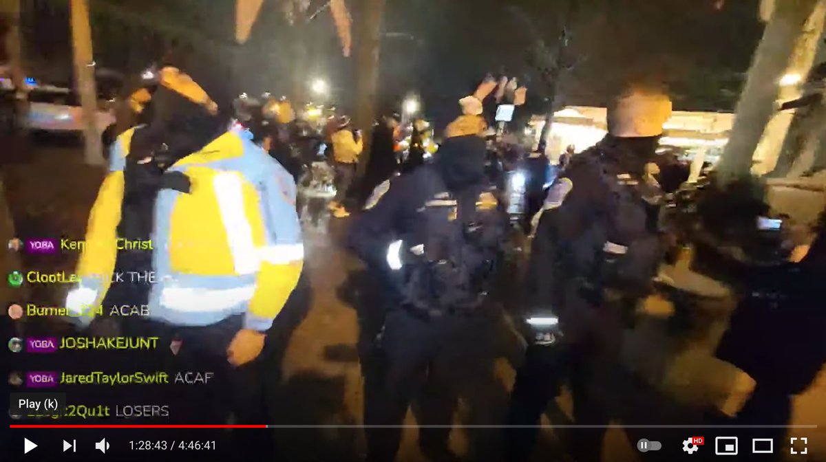 (PS3) Seconds later the police arrive and create a perimeter. The Trump supporters—again, this is right outside where Trump's war room is—start chanting "F*ck the police!" and "ACAB!" ("All Cops Are Bastards!"). This was Insurrection Eve.