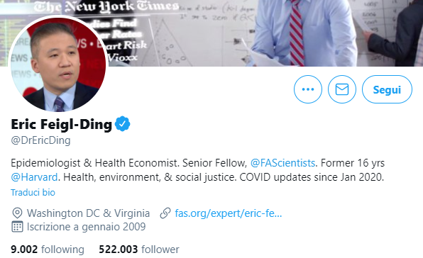"Epidemiologist" con 522.000 follower (che invidia!) e la "sua" Harvard diventa quella ufficiale (ovvero @Harvard).