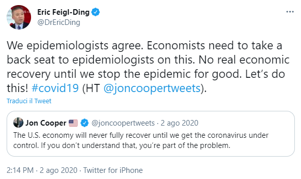 Doveroso, credo, in quanto oggi alcuni si credono furbi contestando Tarro, ma linkando il signor Ding come esperto in materia COVID.