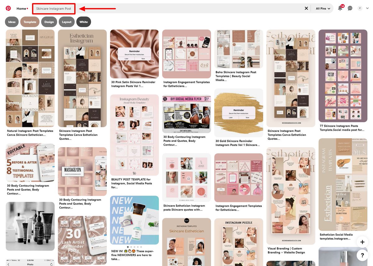 Pergi Pinterest, search 'Skincare Instagram Post'. Puff! Banyak keluar idea untuk buat posting.