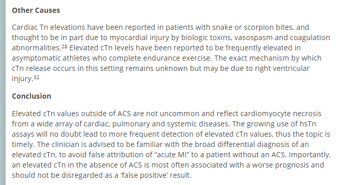 Snake and scorpion venom can cause a sharp rise followed by gradual decrease in troponin just as the reddit poster described.