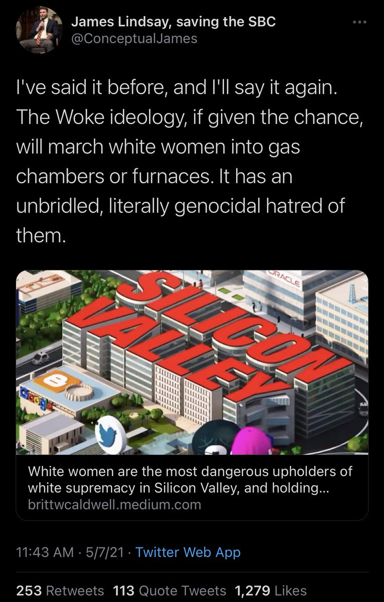 Lindsay, too, is posturing against white identitarianism. Except he tweets like a Neo-Nazi all fucking day.