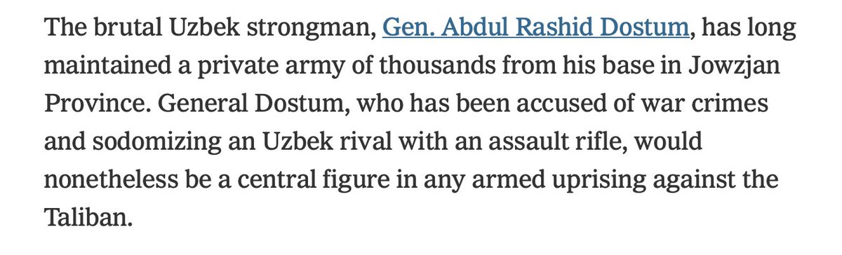 Deja vu all over again. The New York Times loves them some Afghan warlord stories. Heavy D didn't sodomize anyone but damn... does that make for good copy. FYI NYTimes...Dostum is actually the official Field Marshal of the Afghan army not a warlord nytimes.com/2021/06/22/wor…