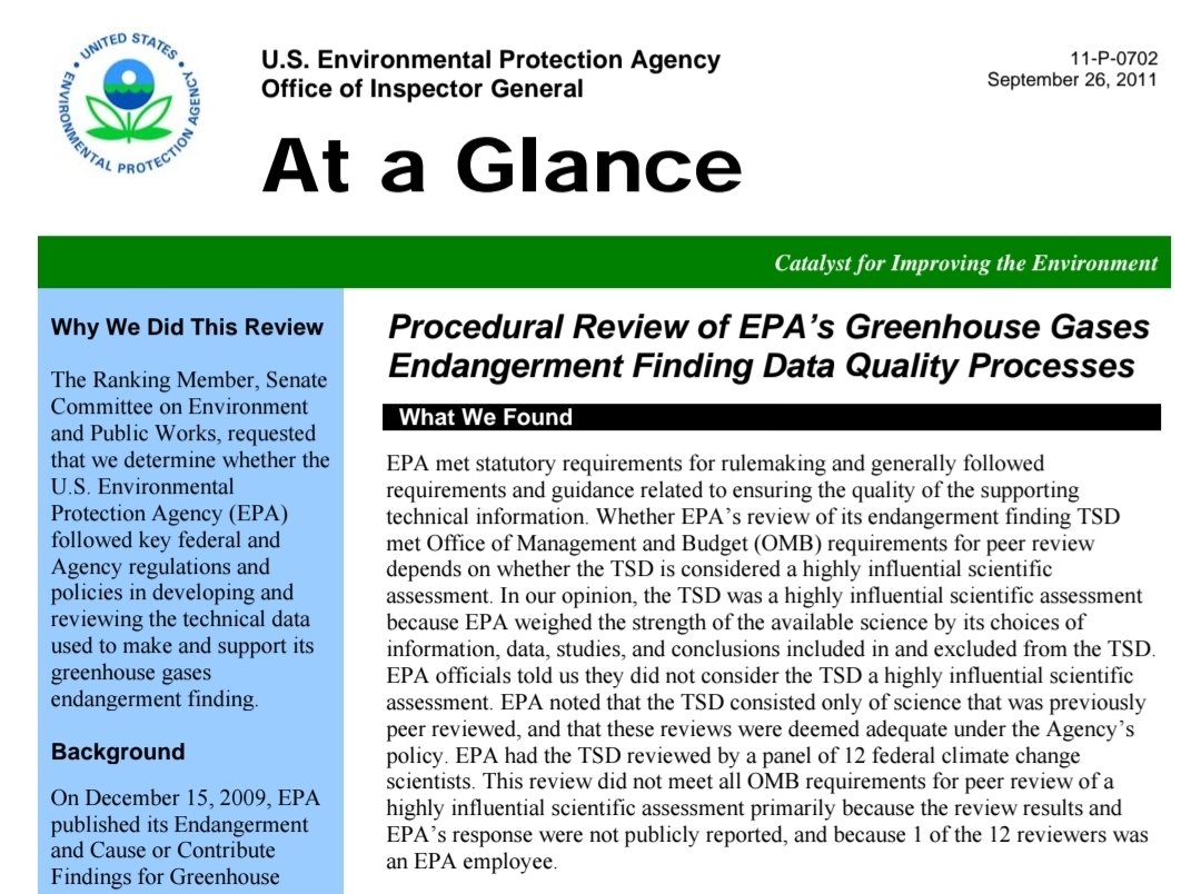 17 years ago, EPA produced a "Technical Support Document" for the Endangerment Finding under a sham "peer review" process that was covered up until an Inspector General investigation.