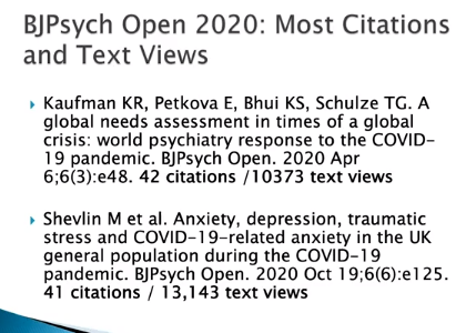 @TheBJPsych The BJPsych Open articles with the most citations, and those from 2020 including the number of text views (both were about COVID).