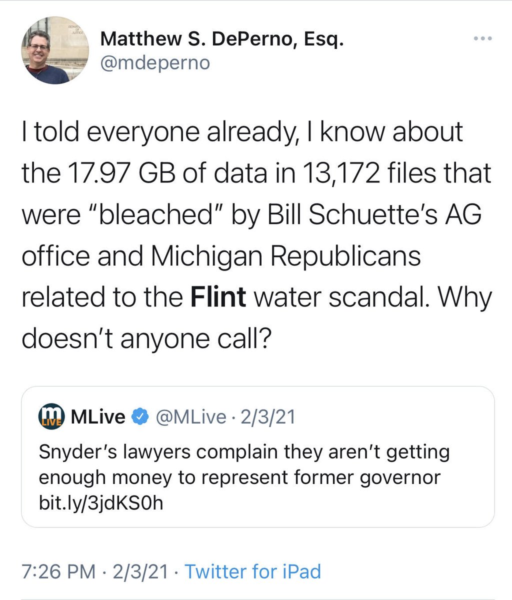 2. Michigan's state-run media ignored this part of the hearing, but instead declared victory for Dana Nessel. Having now reached out to several reporters, I have learned that the document production issue was not deemed news-worthy (i.e. must be hidden from public view).