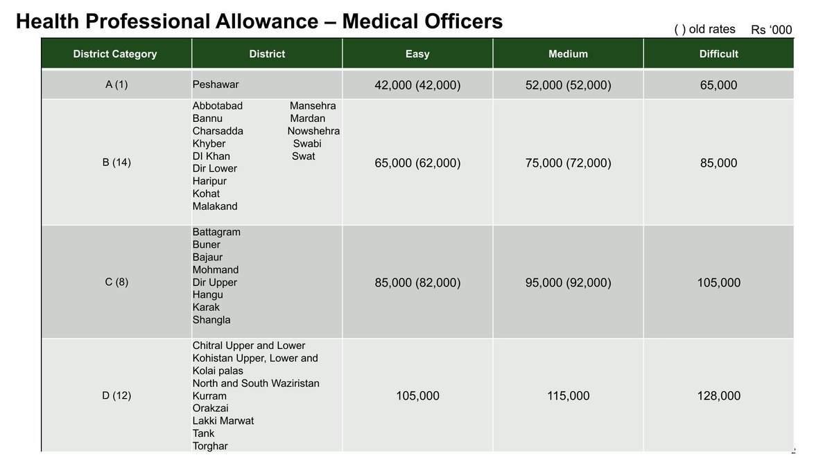 c. Revamping health professional allowance, to make serving in the periphery more attractive. We need doctors outside Peshawar too.