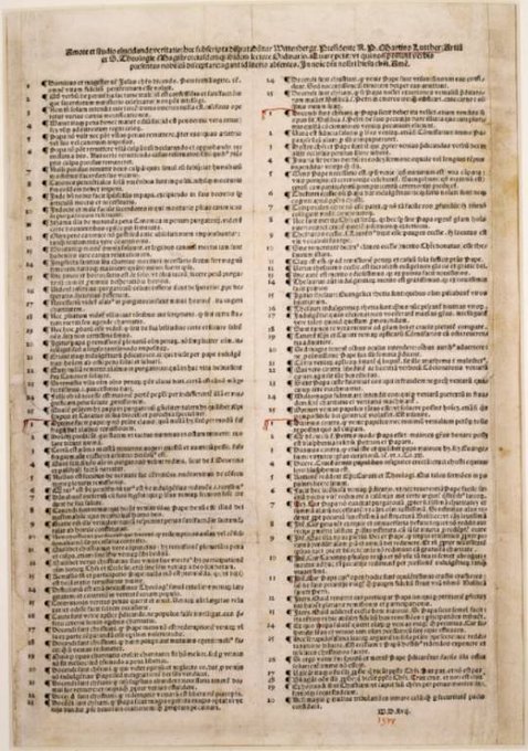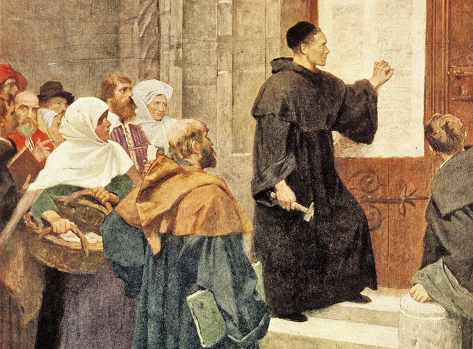 Op deze dag in 1517 bevestigde Maarten Luther - volgens de traditie - zijn 95 stellingen aan de kerkdeur van Wittenberg. Deze actie markeerde het begin van de Reformatie. In zijn stellingen keerde Luther zich vooral tegen aflaatpraktijken van de kerk. Een kort 🧵-je