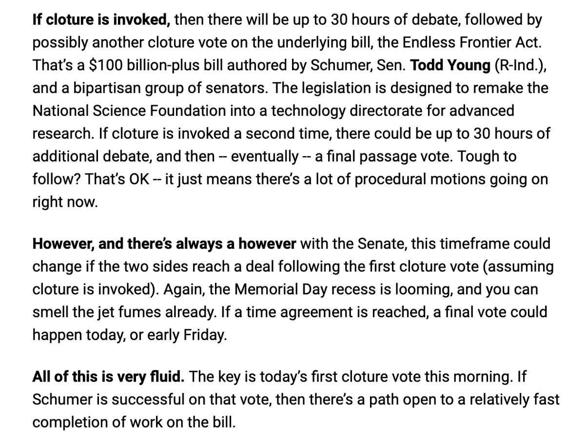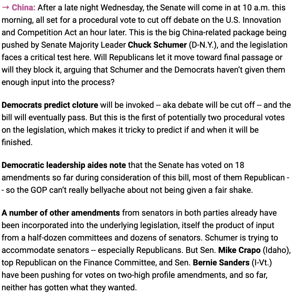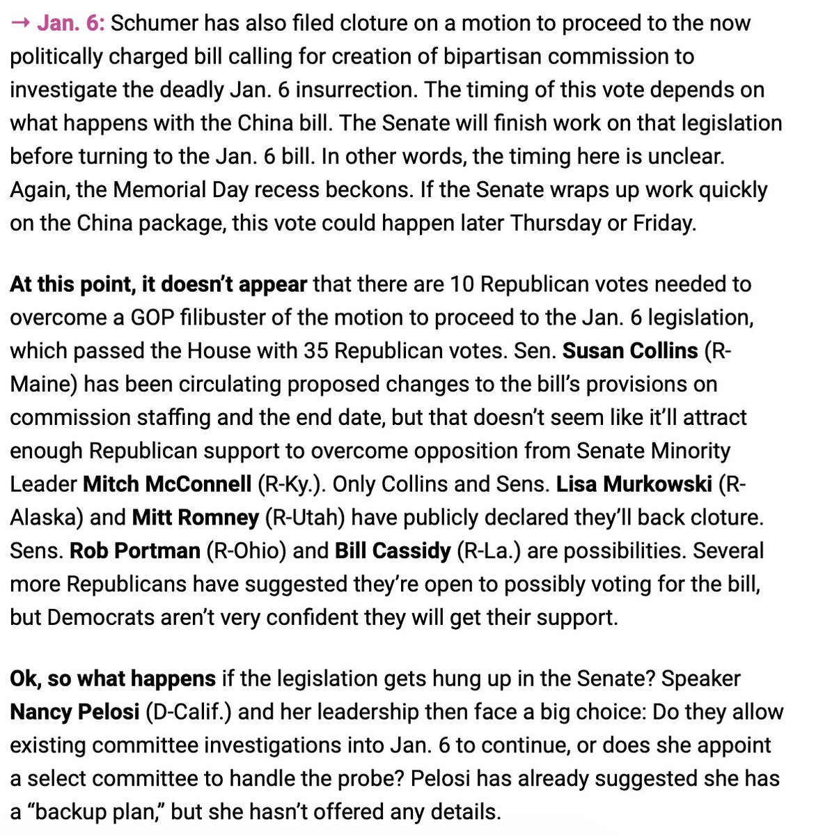 @JoeBiden@WHCOS@SpeakerPelosi@SenSchumer@PunchbowlNews Could this all be ready for floor consideration in July? “Ambitious but possible,” one Senate aide said. If not, expect legislative work to bleed into the early part of August. The early September sked is tight due to the Jewish High Holidays. Oct s better