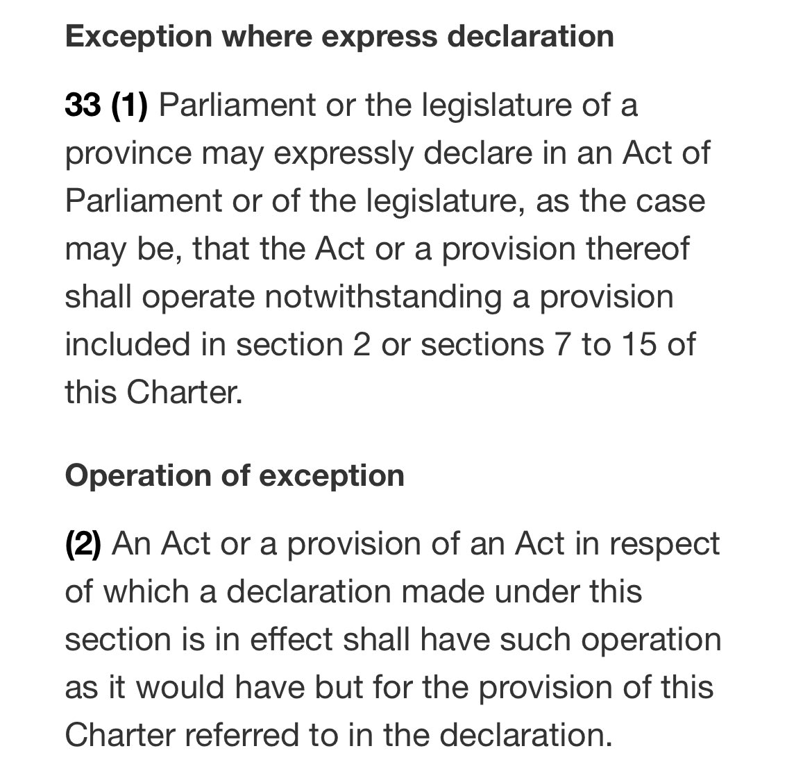 While I have other issues with s. 33, the biggest issue I have with @GeoffSigalet’s piece is the second myth. There are several reasons for this. The first is a matter of statutory construction. I’ve posted below the relevant portion of s. 33 and s. 1…/1