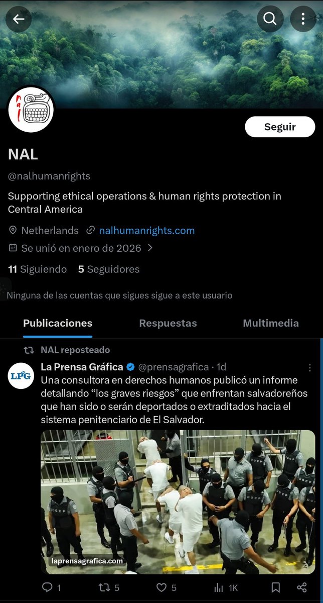 Así que, por lo que veo, nalhumanrights no parece ser una institución oficial de derechos humanos. Según la información disponible, solo se presentan de un servicio de consultoría enfocado en derechos humanos y cumplimiento normativo en Centroamérica, dirigido a ONGs, empresas e instituciones, pero muy relacionada con FACTUM a través de uno de sus redactores (que ya ya escrito para otras páginas web). No está afiliado a ninguna National Human Rights Institution (NHRI) oficial acreditada por GANHRI, ni tiene relación aparente con los Países Bajos (Netherlands) hasta donde cualquiera puede buscar en internet.