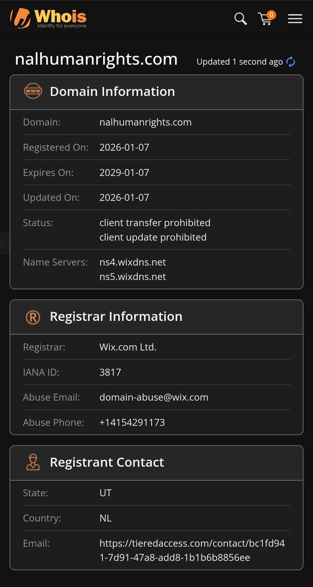 Cuenta en X creada este mes (entre el 1 y 7), web estrenada el 7 de enero y operando desde Netherlands a través de una página web en Wix 😁. ¡Vaya eficiencia de la "ONG" express! 🇳🇱🌬️