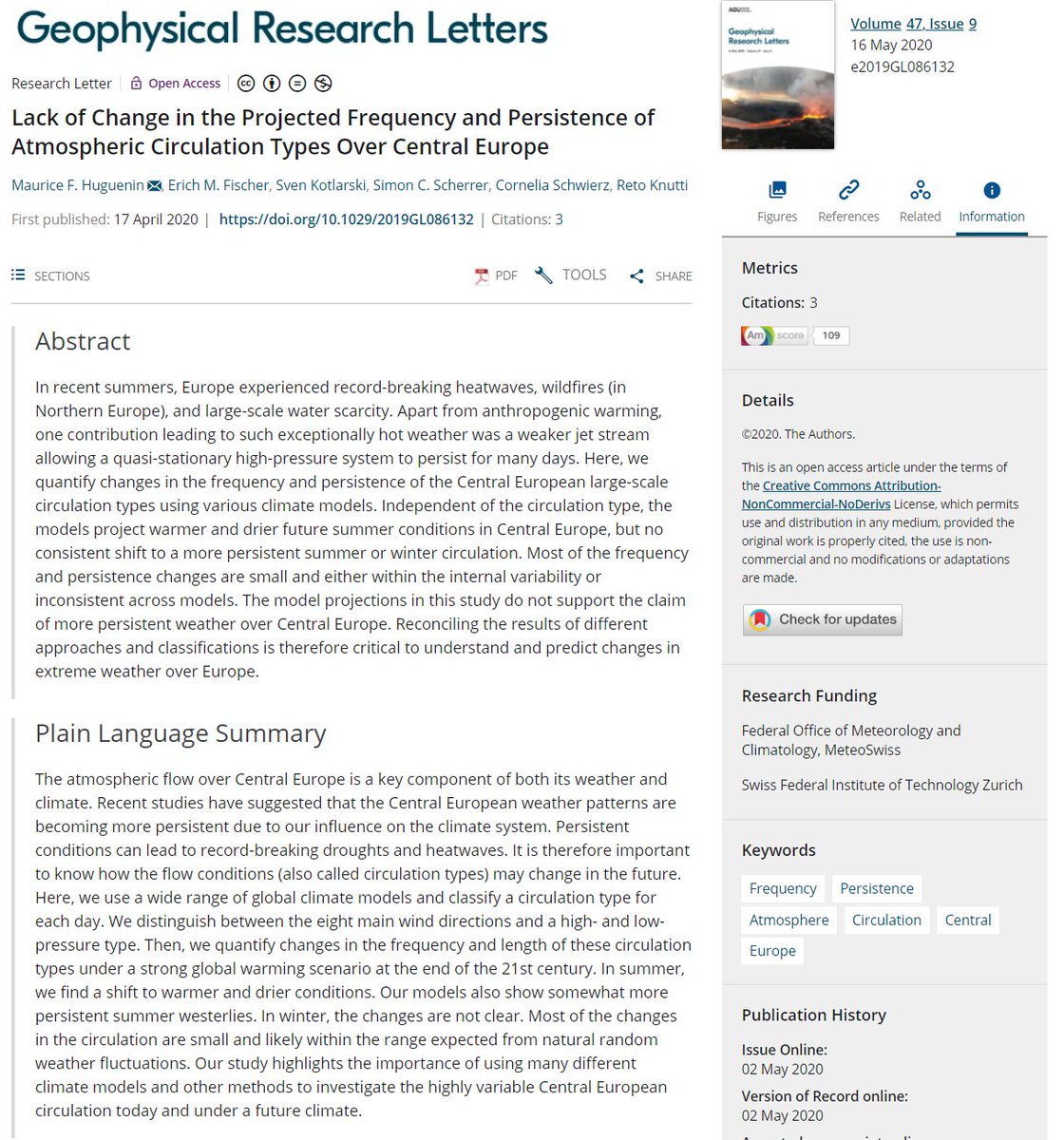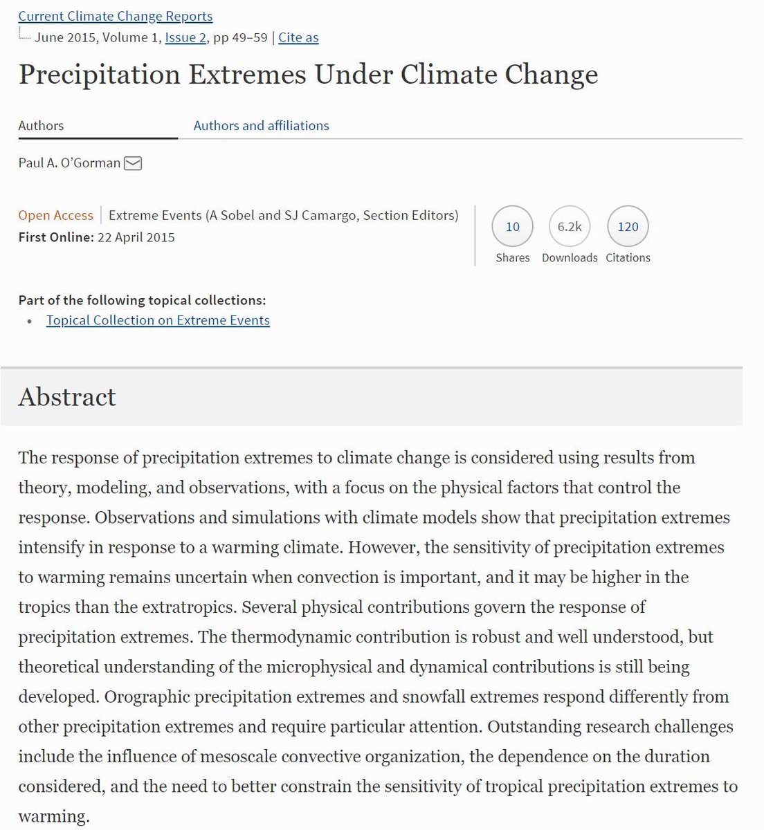 6/ Selbst wenn die Sommer trockener werden nehmen die extremsten Niederschläge zu. Die ersten Klimamodelle haben das vor 30 Jahren vorausgesagt, bevor es genügend Beobachtungen gab. nature.com/articles/nclim…