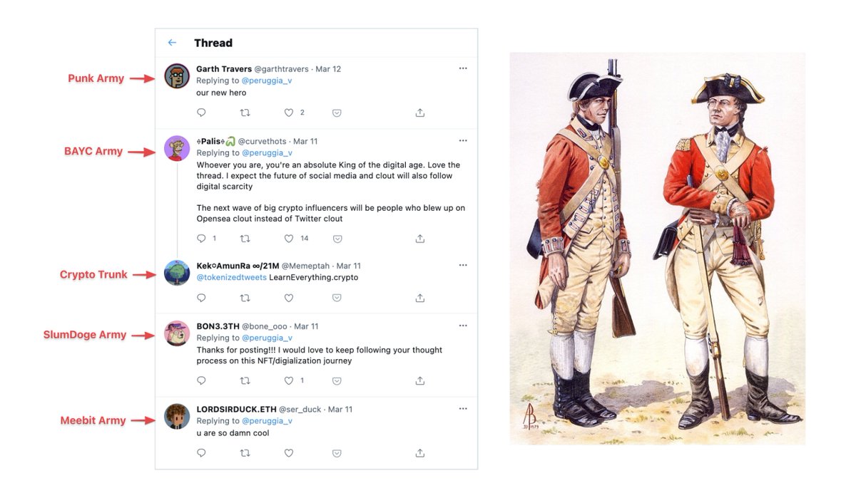 The army you're a part of can give me an idea of who you are and what you believe in. While it isn't currently a norm for NFTAs to have explicit beliefs and values, it's obvious that the BAYC army is evolving differently from the punk army.