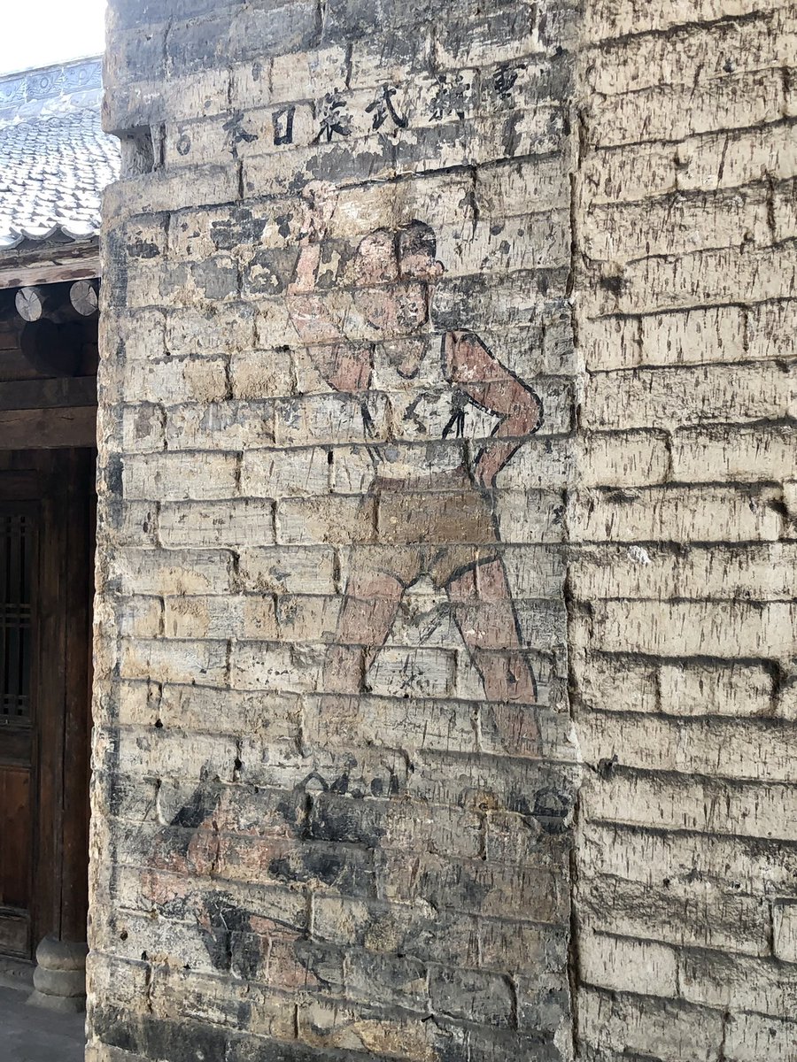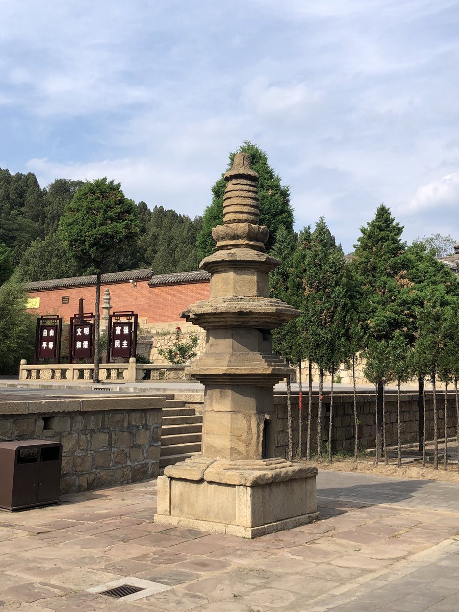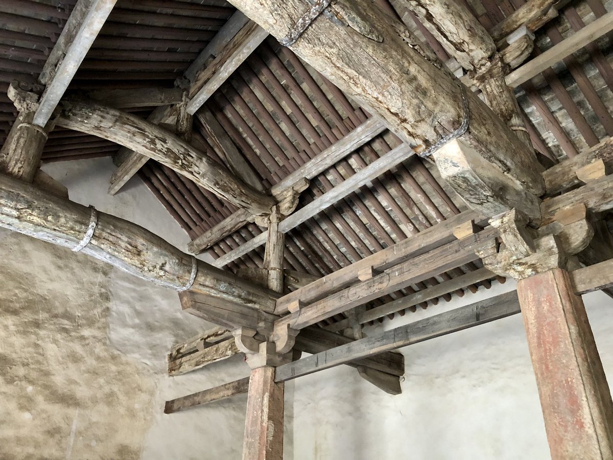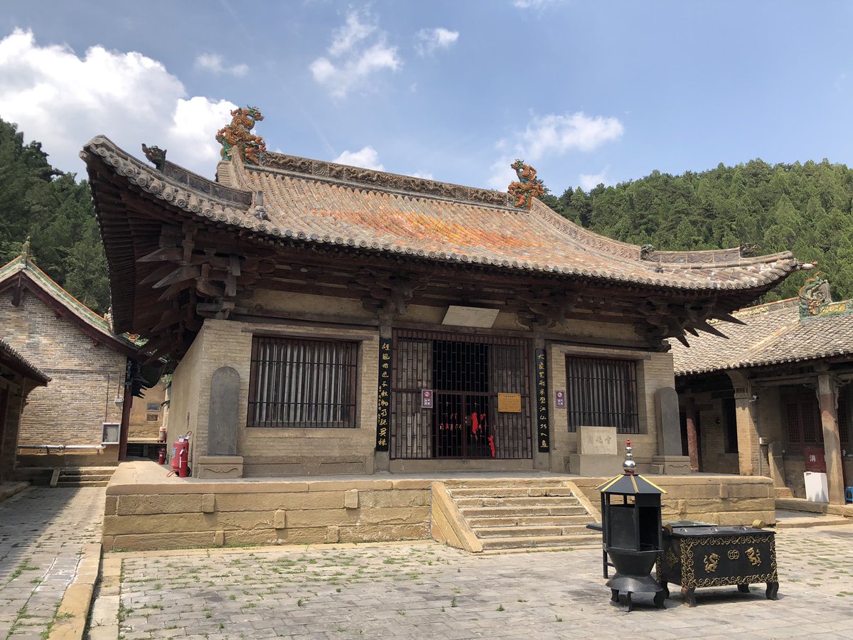 But onwards! I stagger out into sunlight. Helped by @xujnx’s database, next door we find 12th century Jin temple - closed for lunch - but with its massive red-painted entrance and huge Tang masonry base giving a sense of scale.