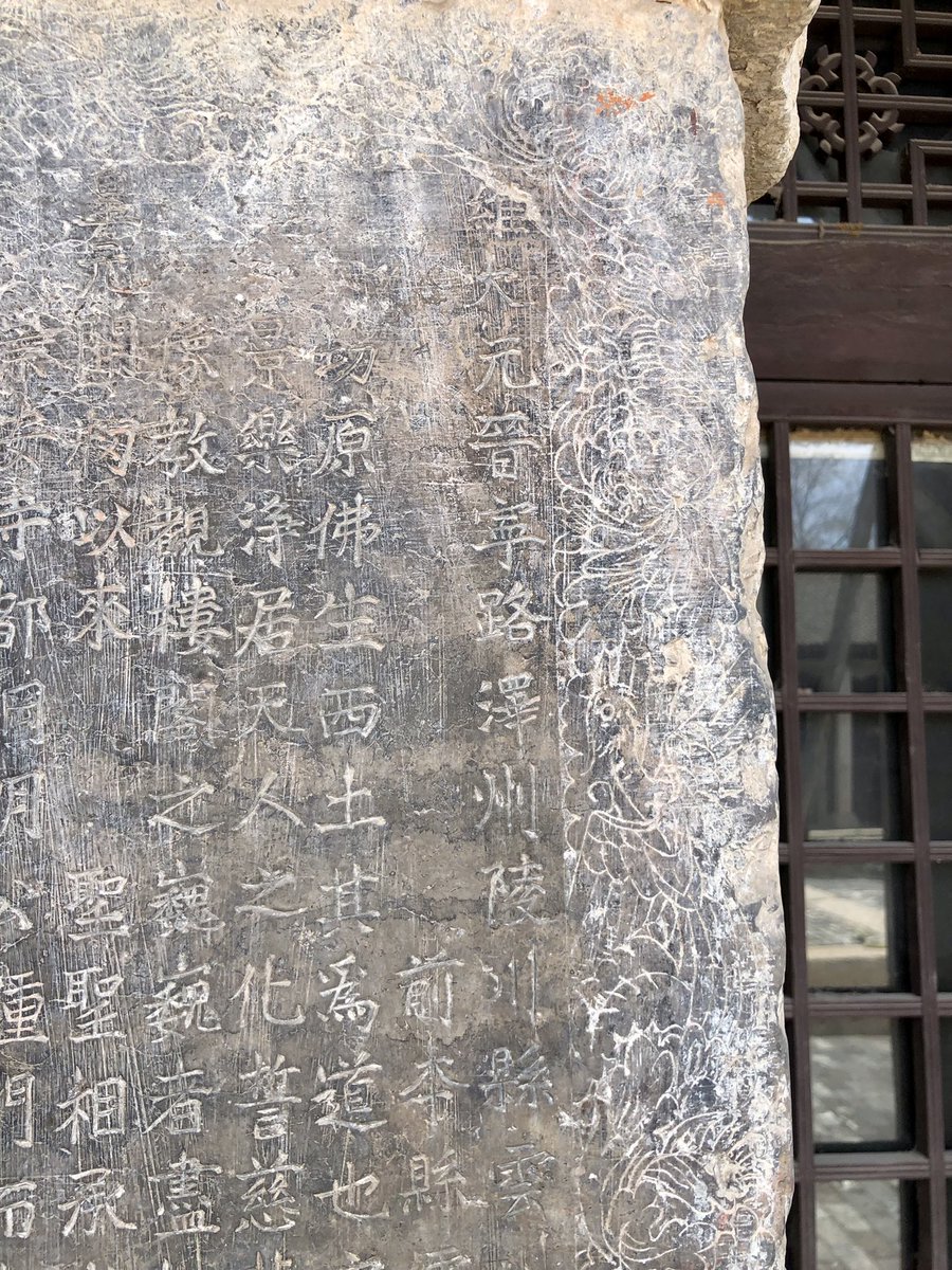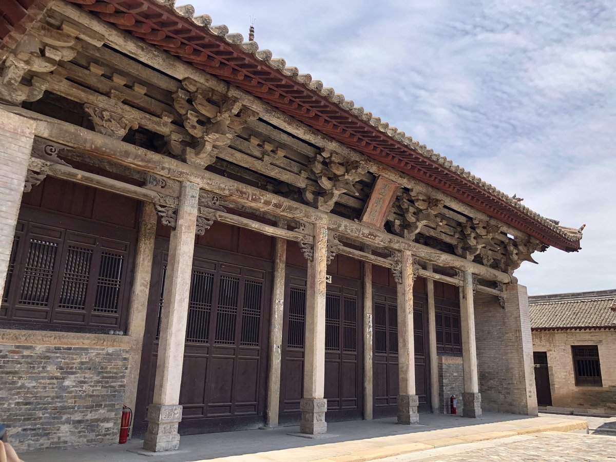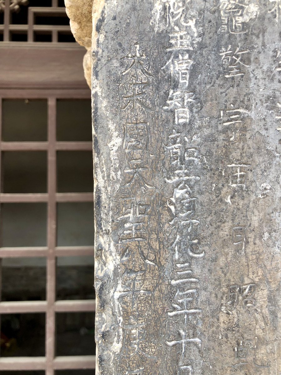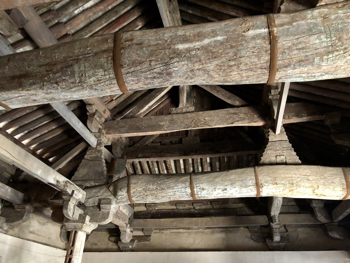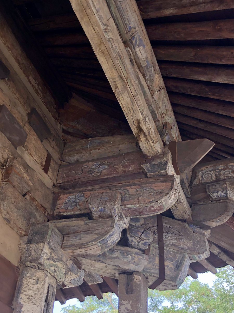 But onwards! I stagger out into sunlight. Helped by @xujnx’s database, next door we find 12th century Jin temple - closed for lunch - but with its massive red-painted entrance and huge Tang masonry base giving a sense of scale.