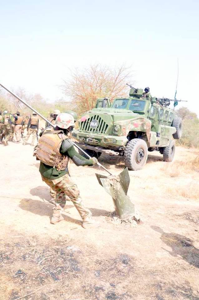 In 2018 a Nigerian army patrol team comprising three 14-ton Bigfoot MRAPS were conducting a mounted patrol in Borno. The scout platoon crept slowly because the route had become known as a death trap when ever there are sand storms.
