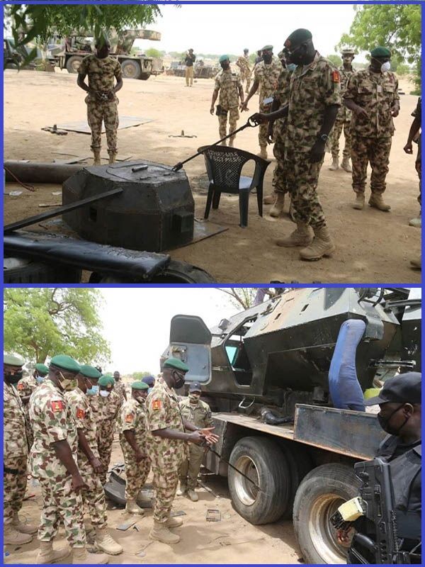 Engineers at the Nigerian Army Command Engineering Depot attached rollers with projective steel grinders to armoured vehicles.