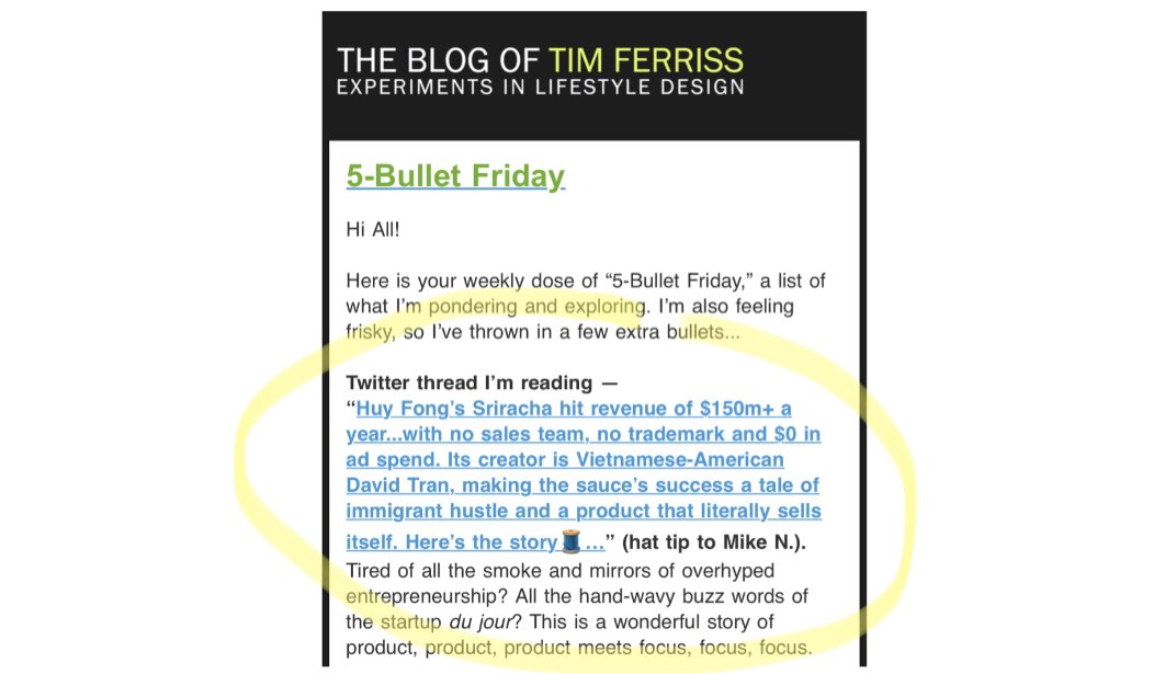Huy Fong's Sriracha hit revenue of $150m+ a year...with no sales team, no trademark and $0 in ad spend.