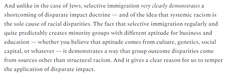 7/Selective immigration gives us a very clear, measurable, obvious reason to temper our use of structural racism as a one-size-fits-all explanation for all group disparities -- and to qualify our use of disparate impact as a legal doctrine.
