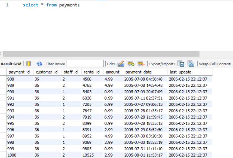 For e.g., Consider a table PAYMENTS. It has more than 1000 rows. [See the image]