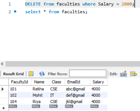 SQL Query: DELETE from faculties where Salary = 2000;