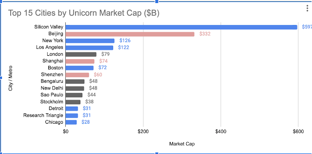 12. Now look at this chart. This is the top unicorn cities by market cap.