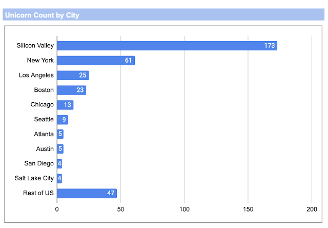 6. The San Francisco Bay Area leads with a whopping 69 of 227 all new unicorns - 30% of those created in the last 8 months. Yowza.