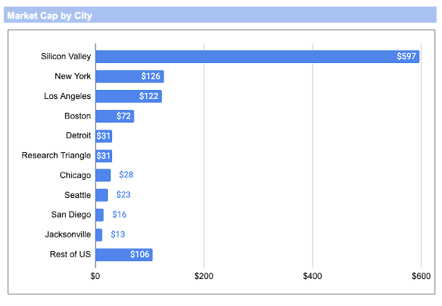 15. This is the ranking by unicorn market cap for US cities. Note two things: Detroit in 5th place, and Jacksonville in 10th.