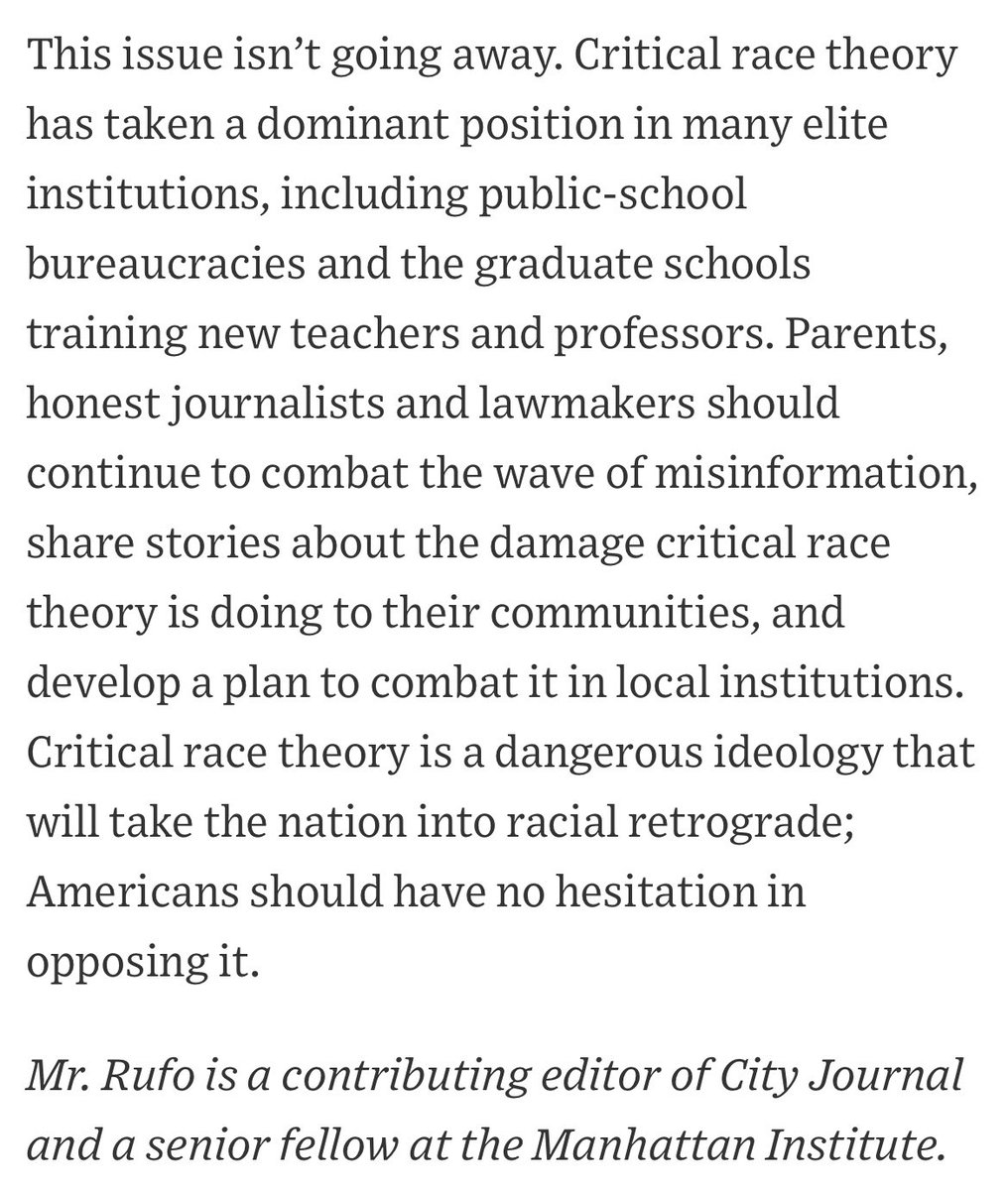 Ah yes, CRT is a “radical ideology that seeks to use race as a means of moral, social and political revolution. You may read this charitably and think CRT sounds a lot like the civil rights movement. But WSJ subscribers probably just think [[COMMIE ALERT]]