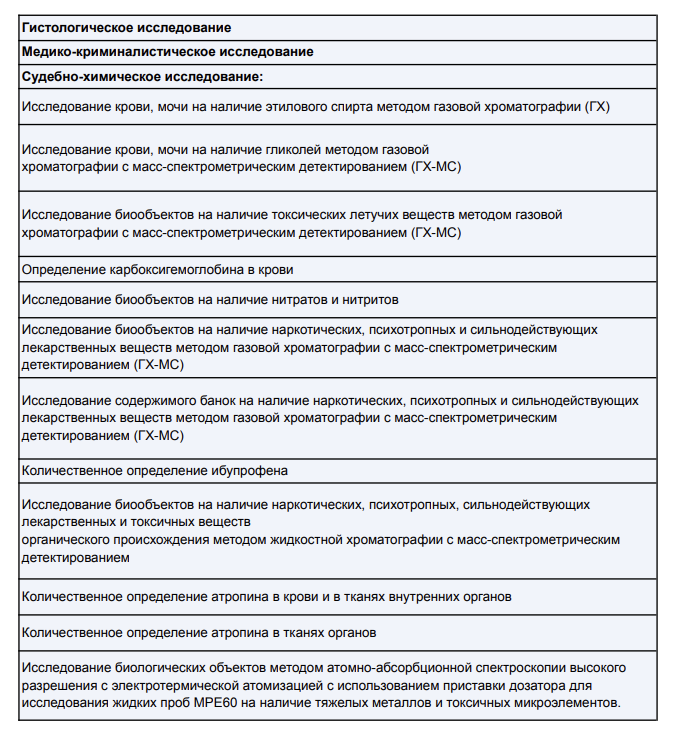 Основная часть документа называется «Специальные исследования», и там перечислен список проведённых лабораторных исследований. Мы публикуем его полностью в виде сводной таблицы (составлено нами). По мнению экспертов, с которыми говорили мы, этот список является необычно широким и нехарактерным для того, что Кремль называет «смертью по естественным причинам». Искали, в том числе, отравляющие вещества. Например, токсины ядовитых растений и грибов. Объектами исследования являлись более 60 фрагментов внутренних органов, смывы из помещений колонии, образцы пищи за 15 и 16 февраля 2024 года.