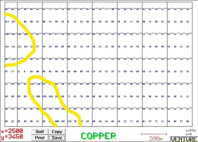 Der sinnvollste nächste Schritt ist, den Boden auf Anomalien, also ungewöhnlich hohe Metallgehalte zu untersuchen. Wir haben das auf einem Stück gemacht und siehe da - stellenweise ganz schön viel Kupfer im Boden!