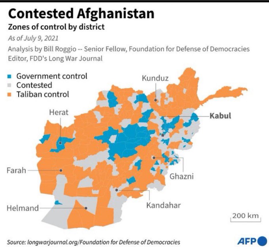 #Afghanistan 🇦🇫 | 85% de l’Afghanistan est désormais contrôlé par les Talibans. Un cessez-le-feu le feu est actuellement en train d’être négocié.