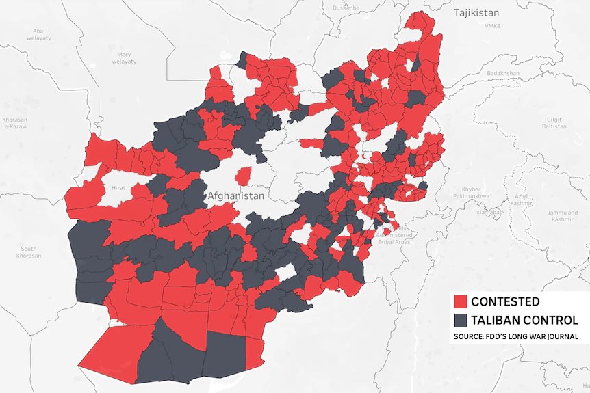 #Afghanistan 🇦🇫 | Une carte de l’évolution du contrôle des districts afghans.