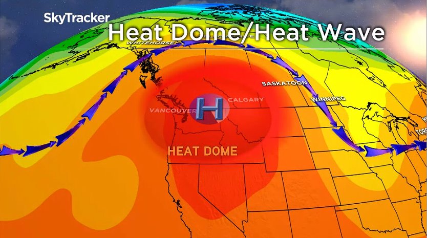 🇨🇦🇺🇲 La ola de calor ha sido provocada por un fenómeno conocido como domo de calor. La alta presión atmosférica actúa como una cúpula que no permite que el calor, intensificado por el aumento de la temperatura del mar, se disipe. Se prevé que la situación mejorará el viernes.