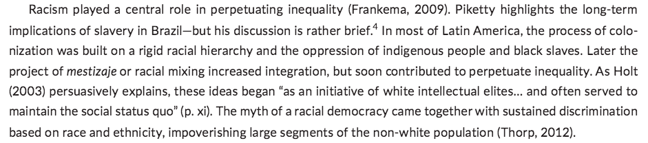 También: a ⬆️ porcentaje de 'mestizos'/'mulatos' ⬆️ desigualdad racial.