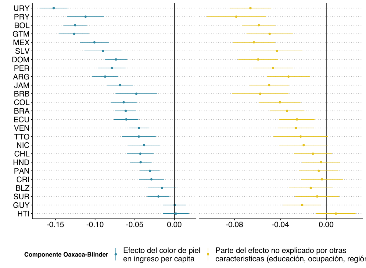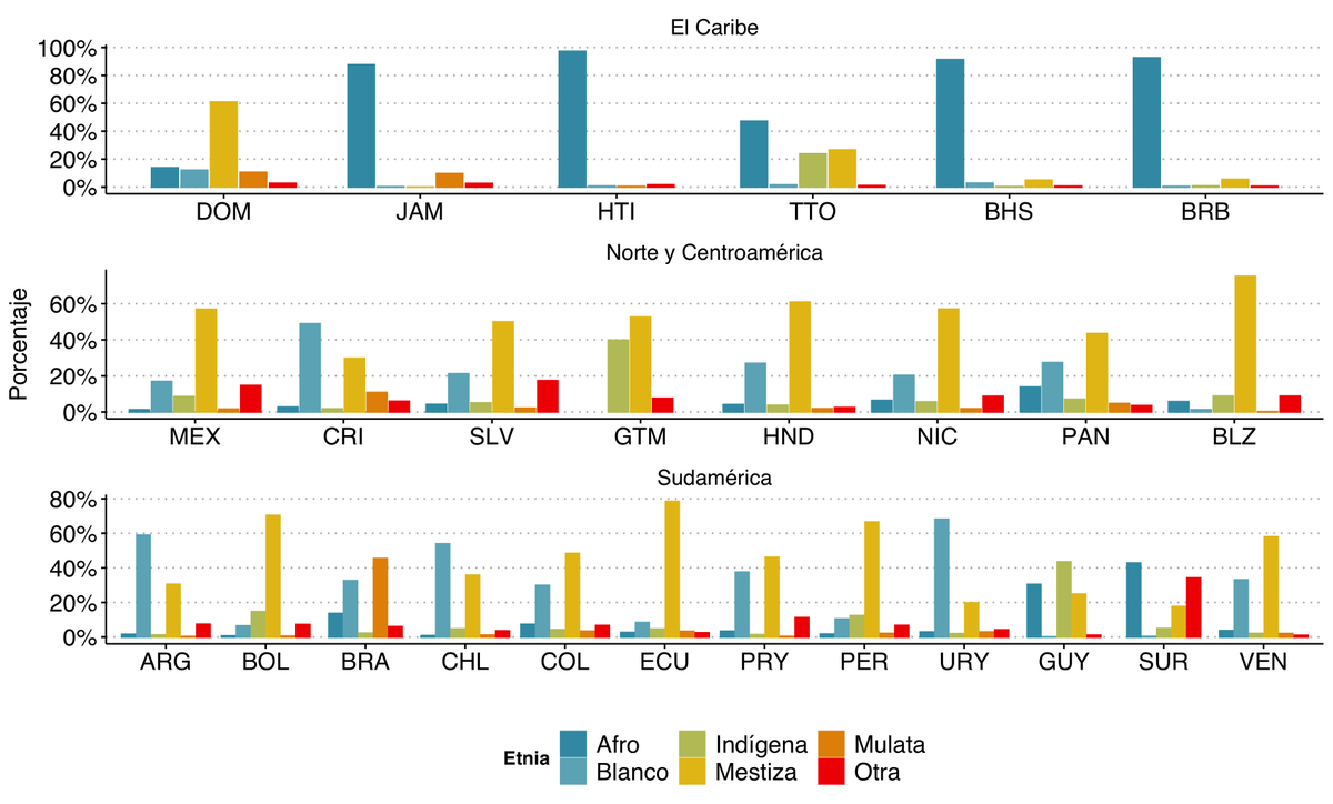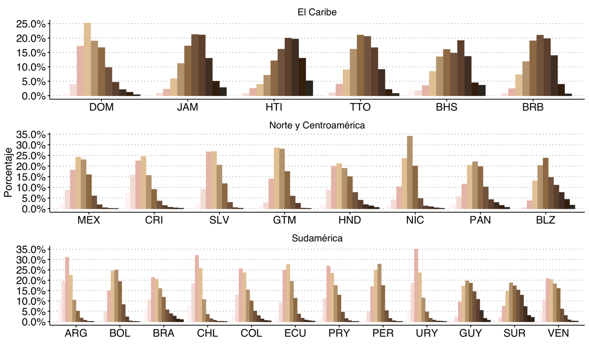 Países como 🇺🇾 🇵🇾 🇧🇴 🇬🇹 🇲🇽 tienen las brechas raciales más grandes; 🇸🇷 🇨🇷 tienen las menores.