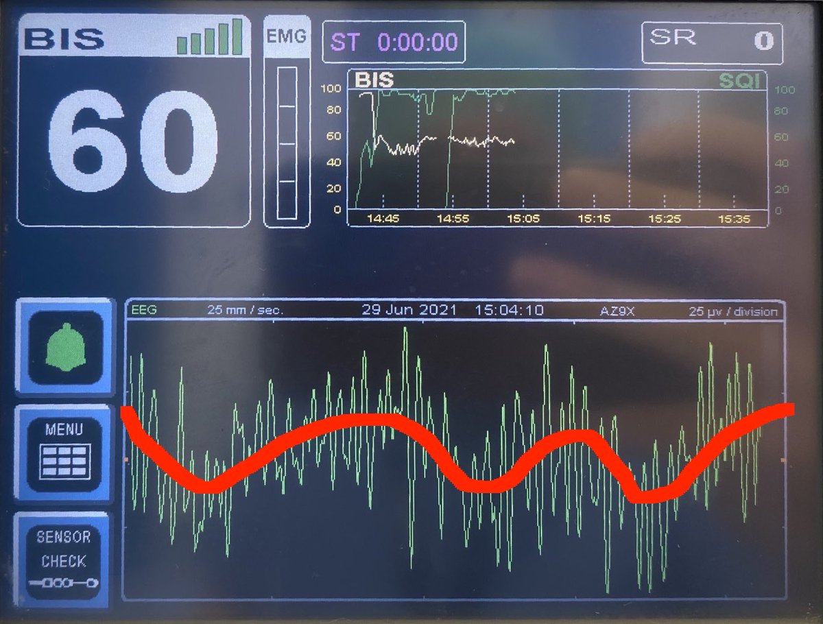Although the BIS is simpler pEEG device than the Narcotrend or Sedline, one can still appreciate EEG features.