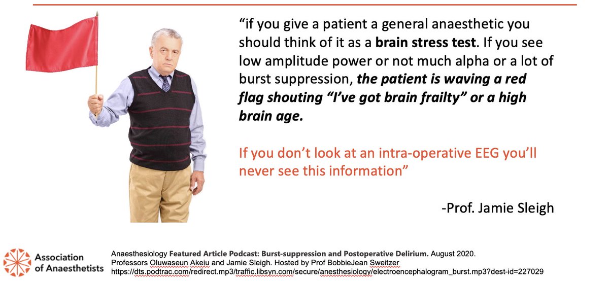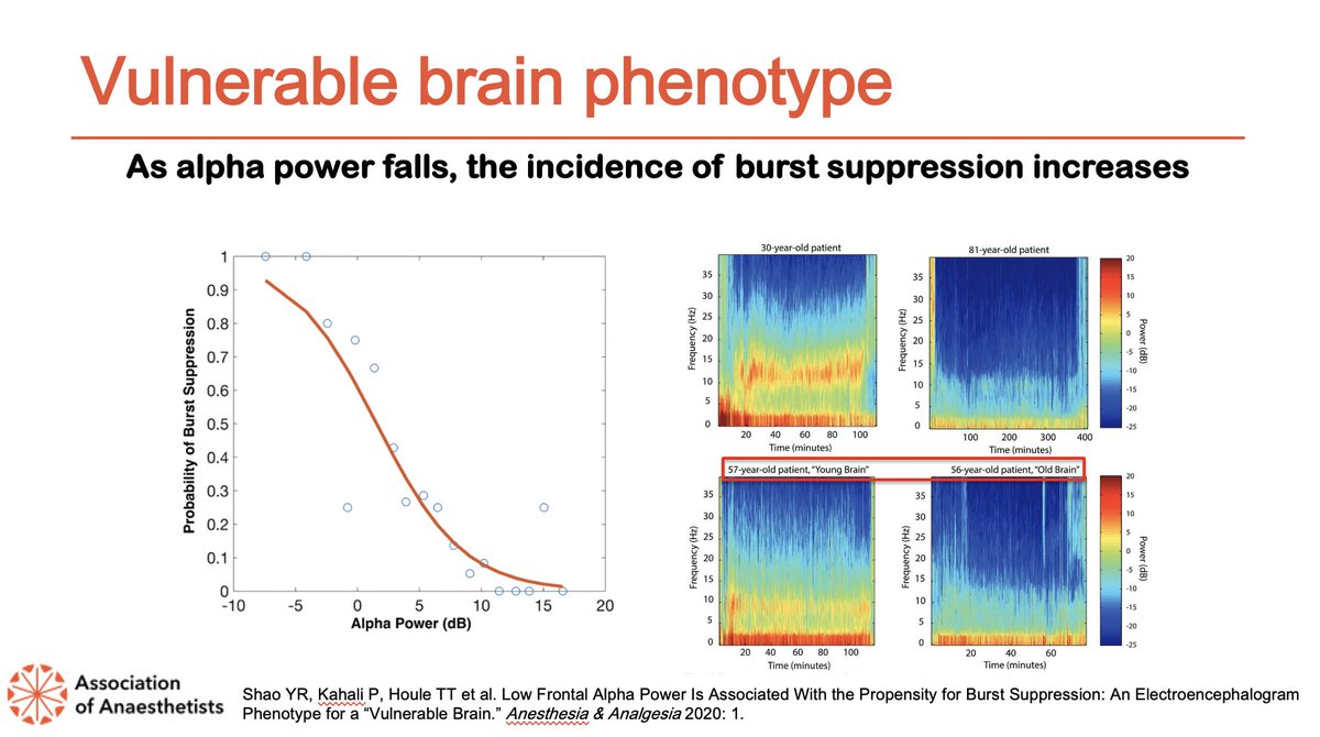 Burst suppression seems to be a marker of a “vulnerable brain”; time in burst suppression is related to post operative delirium.