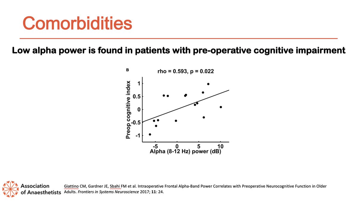 Frailty, co-morbidities and cognitive impairment also reduce alpha power.