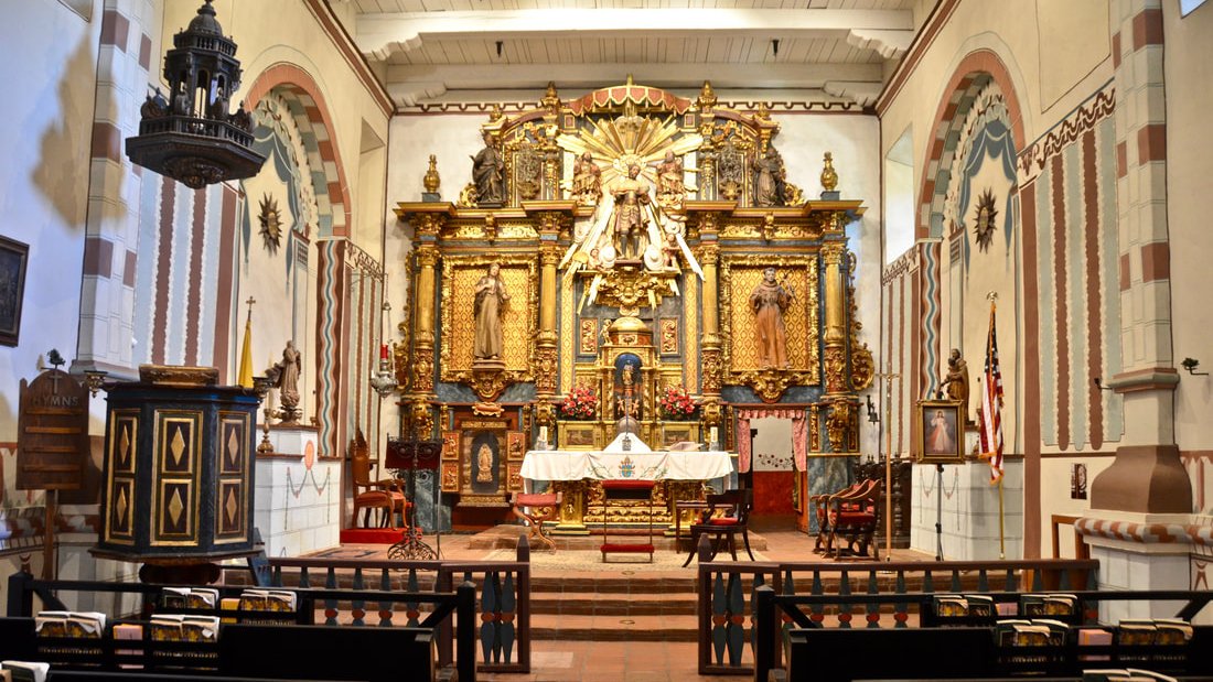 2. Las paredes de su iglesia, de hecho, están pintadas con motivos y dibujos de los indios nativos. Junto a ellos hay una estatua de madera tallada a mano del santo patrón de la misión, Fernando III, enviada por el rey de España.