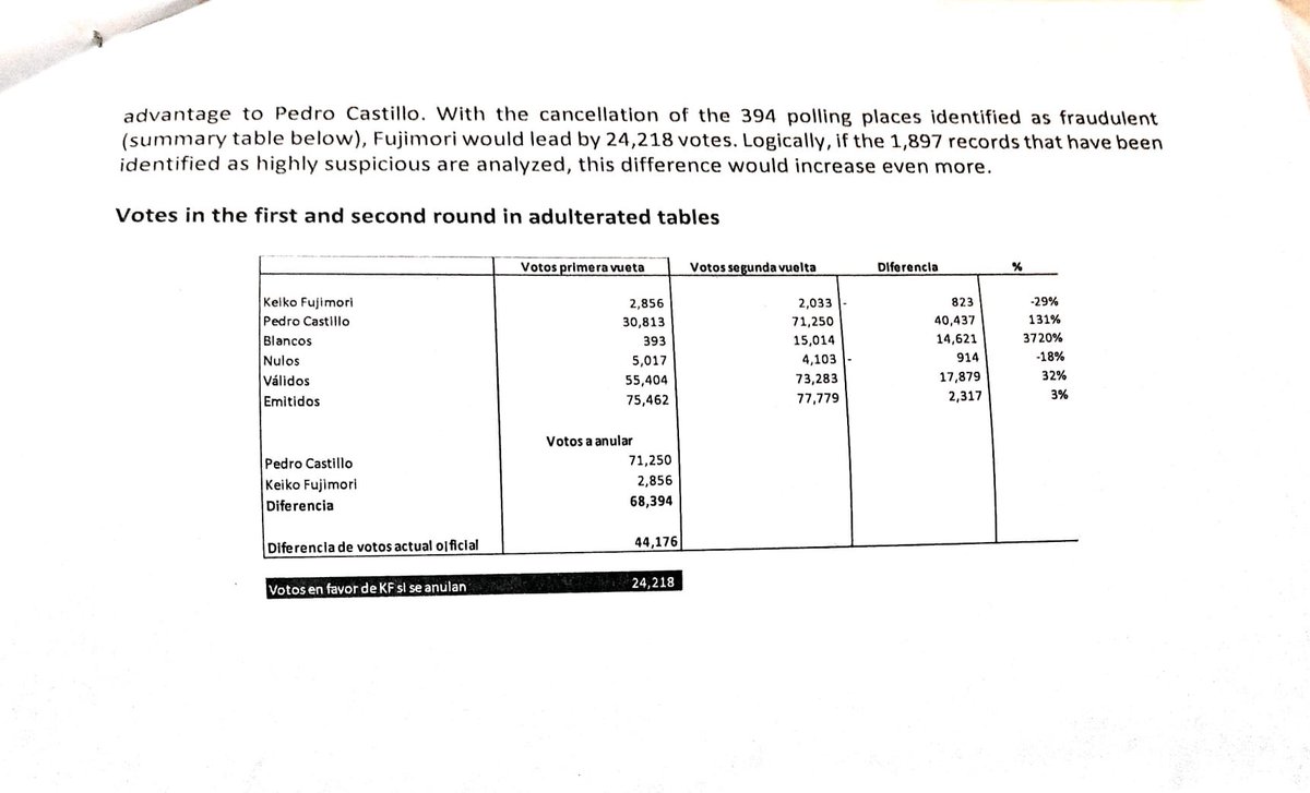 Sobre el contenido: no se limitó a las conocidas alegaciones de fraude en la 2da. vuelta. Se hablaba de irregularidades desde inscripción de partidos. Se ofreció la idea de un sistema electoral y de instituciones "cooptadas". La palabra comunismo y terrorismo, fueron mencionadas.