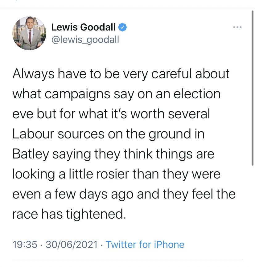 ...been deeply demoralised since Hartlepool. Not least because this is Batley and Spen, it's Jo Cox's seat and of special emotive significance for the party.
