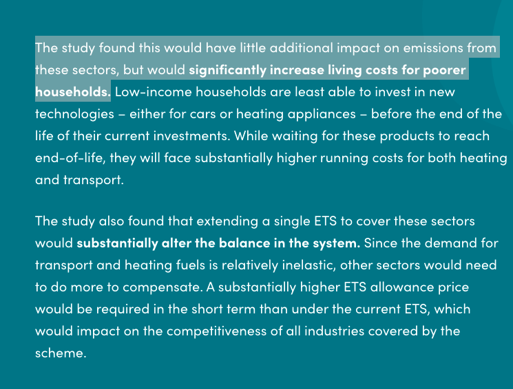 New study from @CambridgeEcon (funded by ECF – full disclosure, ECF funds CB too) suggests including heat/transport in the EUETS would have limited impact on CO2, but high social cost