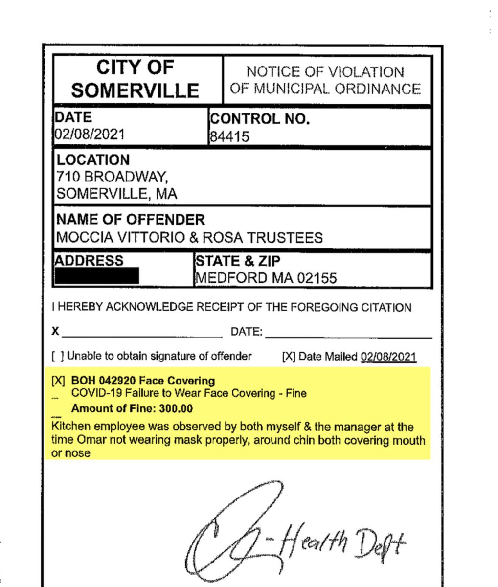 Somerville, MA officials have gone around to restaurants examining the positioning of face masks on kitchen workers and handing out $300 fines if the positioning is deemed to be improper