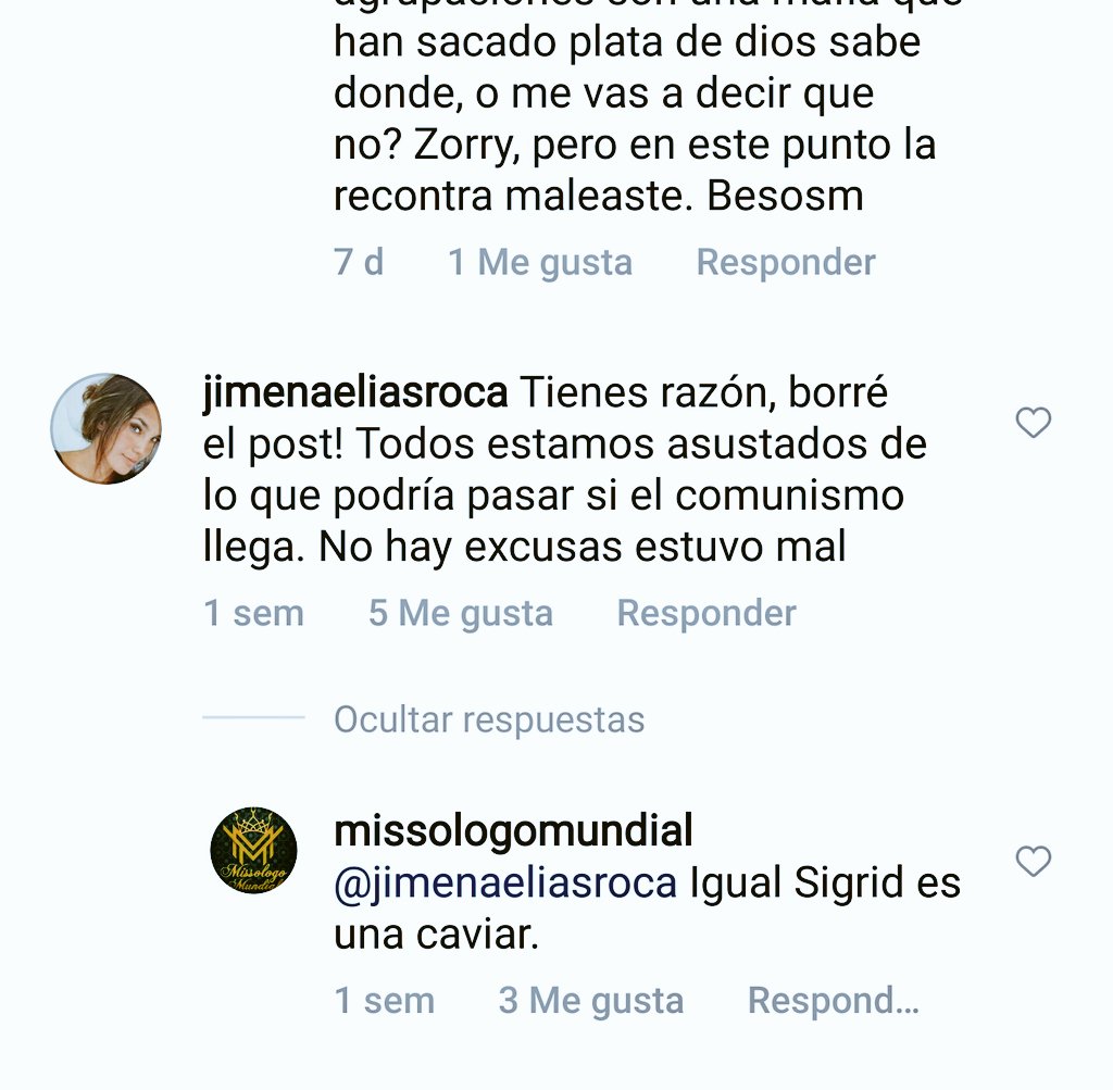 Pero esto no es cierto, su amigaza Jimena Elías, exMiss Perú, alertada de las denuncias borró la publicación para apañar a su amigo y reconoció que estuvo mal lo q dijo. En ningún momento condenó el hecho.
