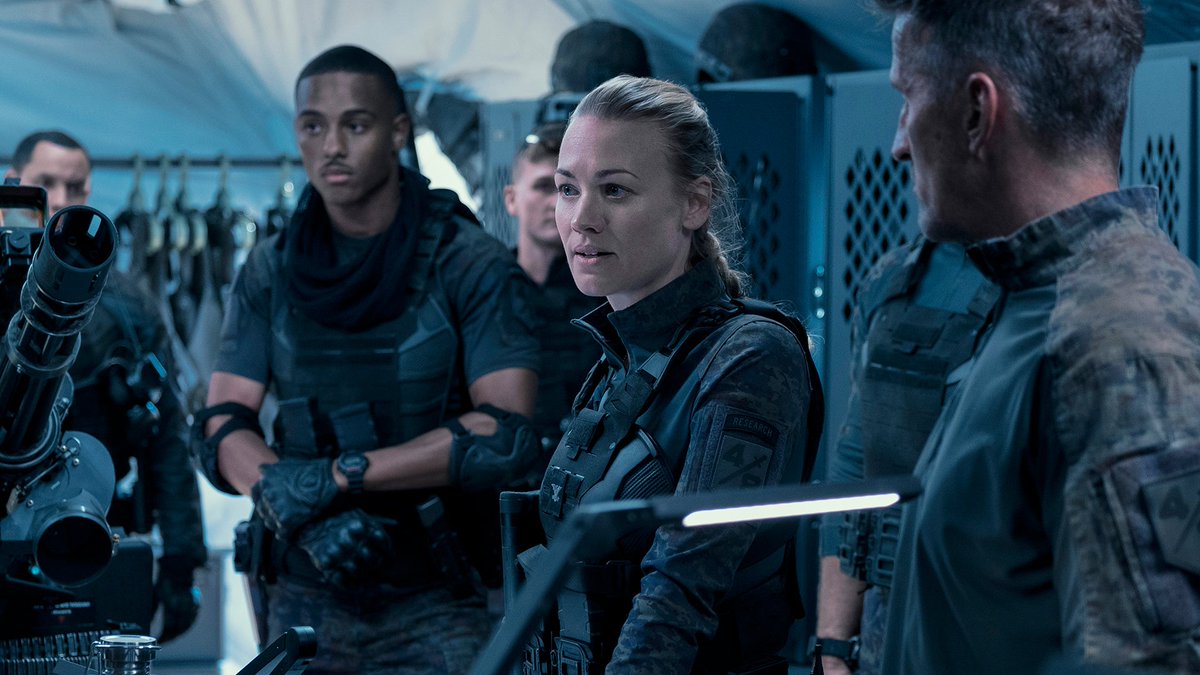 El equipo humano de #LaGuerraDelMañana no está formado por experimentados soldados, sino por vecinos y personas normales requeridos en el futuro, con un reparto liderado por Chris Pratt, con buena química con Yvonne Strahovski y J.K. Simmons, dejando varias notas de comedia.