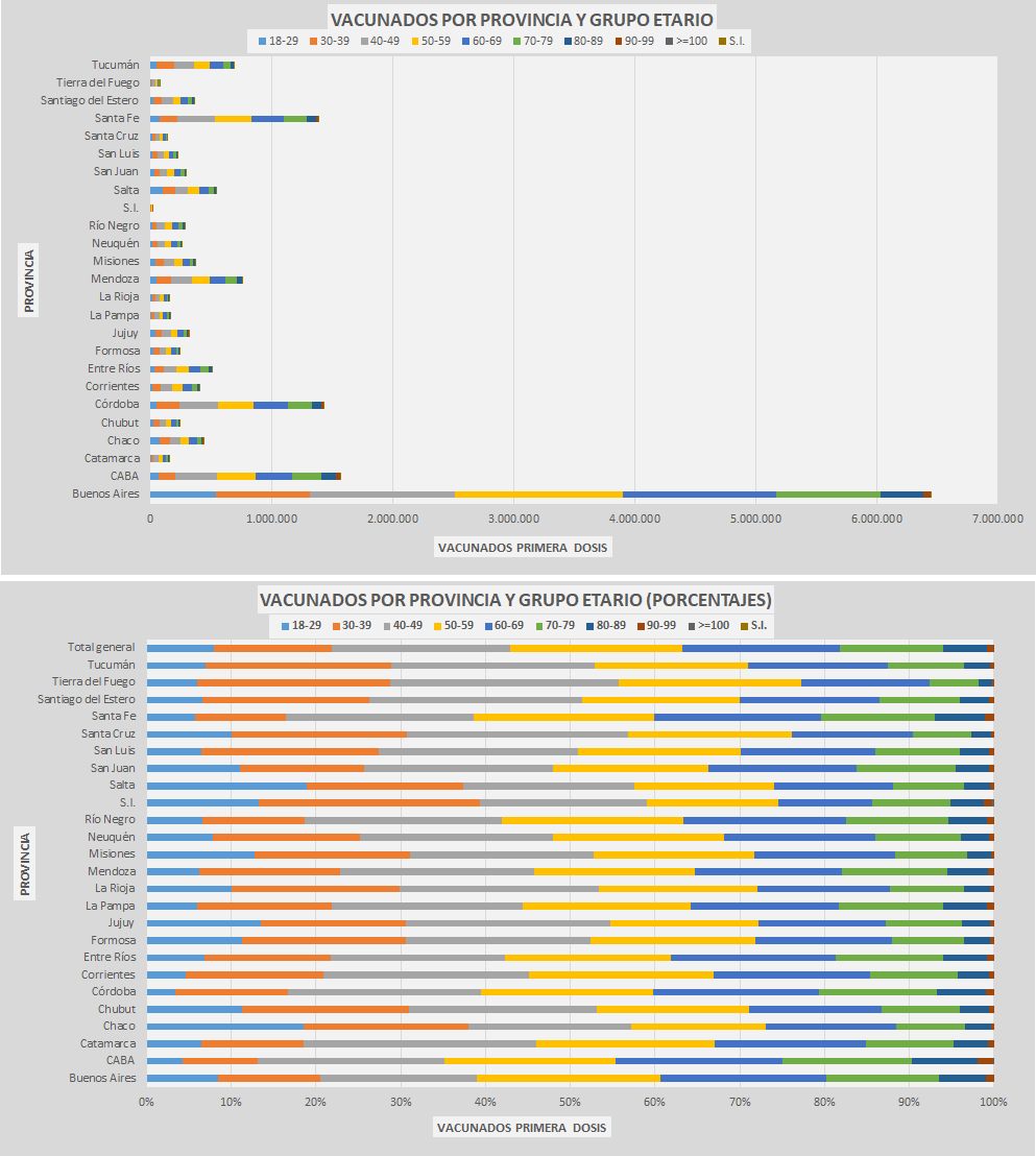 Avance de la Vacunación por sector, por edad y marca de vacuna, por provincia y grupo etario y por provincia y sector.