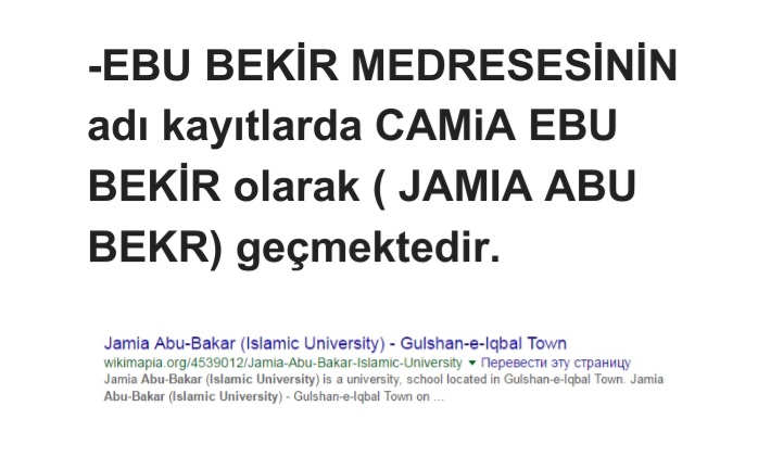 28-Birisinin EBU BEKİR PAKİSTAN medresesi olduğu açık ve net olarak yazılmıştır.